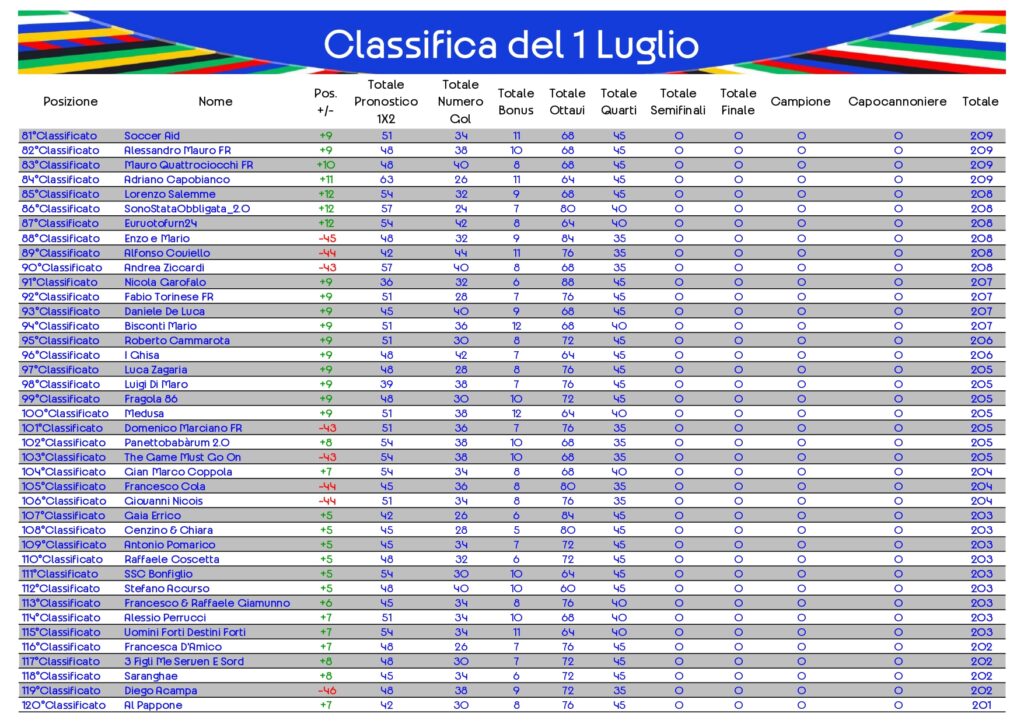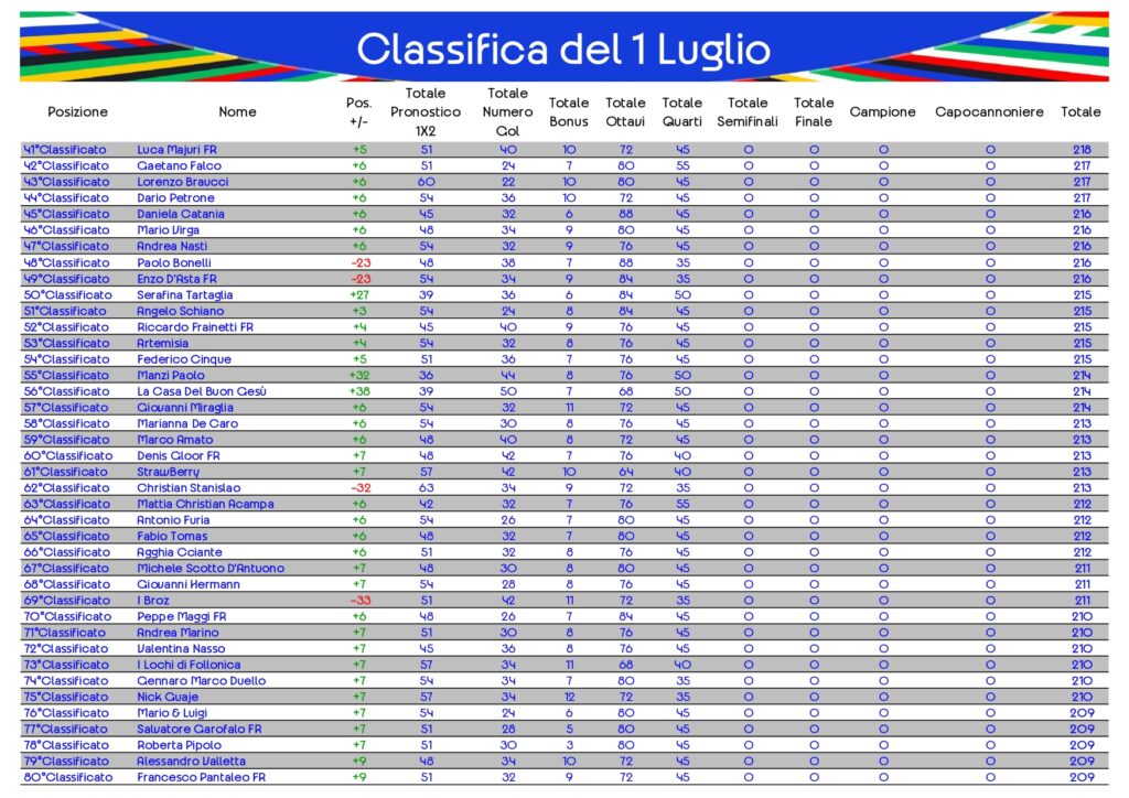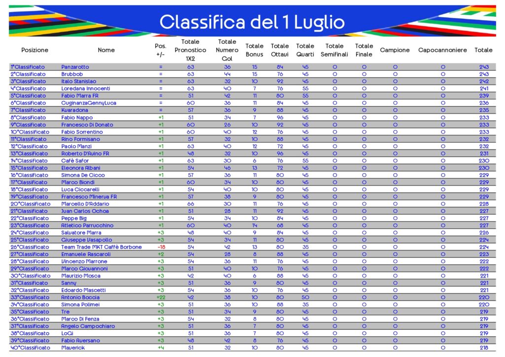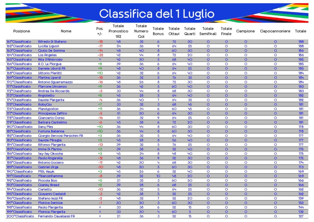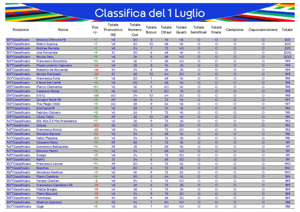 Classifica del 1 Luglio