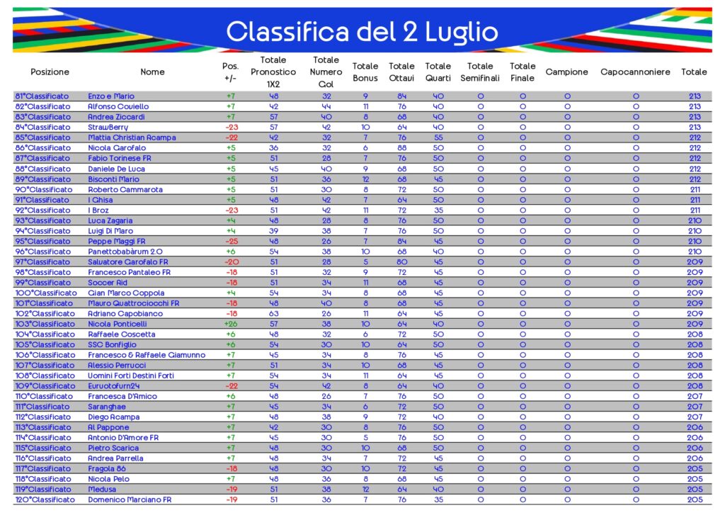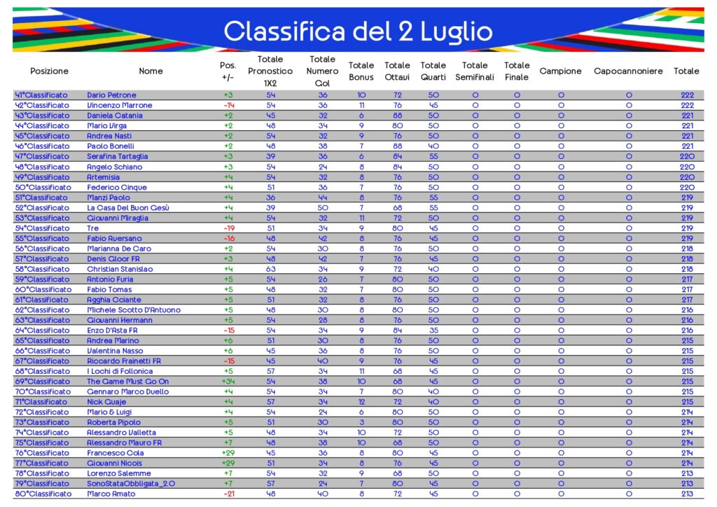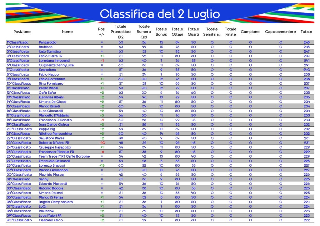 Classifica del 2 Luglio