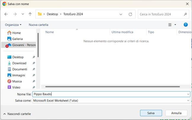 Una volta cliccato sul pulsante “Scarica” bisogna salvare il file in una qualsiasi posizione del proprio computer (Immagine 11) ed inviare il file salvato all’indirizzo info@totoeuropeo.com