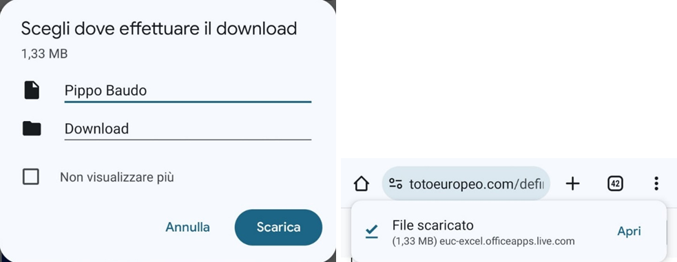 Una volta cliccato sul pulsante “Scarica” bisogna salvare il file in una qualsiasi posizione del proprio smartphone (Immagine 12) e aprire il file scaricato (Immagine 13).