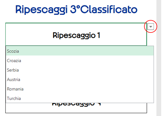 Proseguendo in basso si giunge ai Ripescaggi dove sarà possibile scegliere quattro tra le sei squadre terze classificate che verranno ripescate nella successiva fase (esempio in Immagine 4).