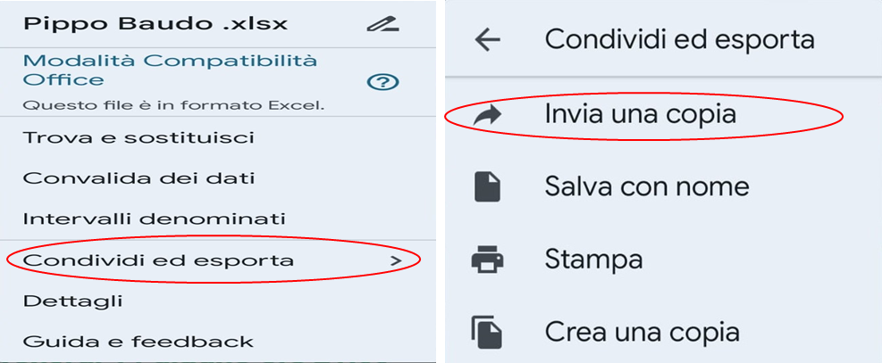 Cliccare su Condividi ed esporta (Immagine 16) e cliccare su Invia una copia (Immagine 17).